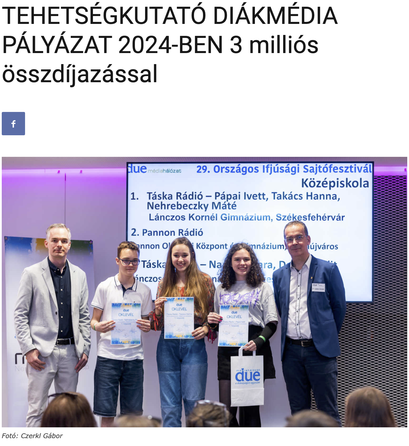 A Diák- és Ifjúsági Újságírók Országos Egyesülete (DUE) kiírta Tehetségkutató Diákmédia Pályázatát, amely egyéni pályázóknak vagy diákszerkesztőségeknek szól.