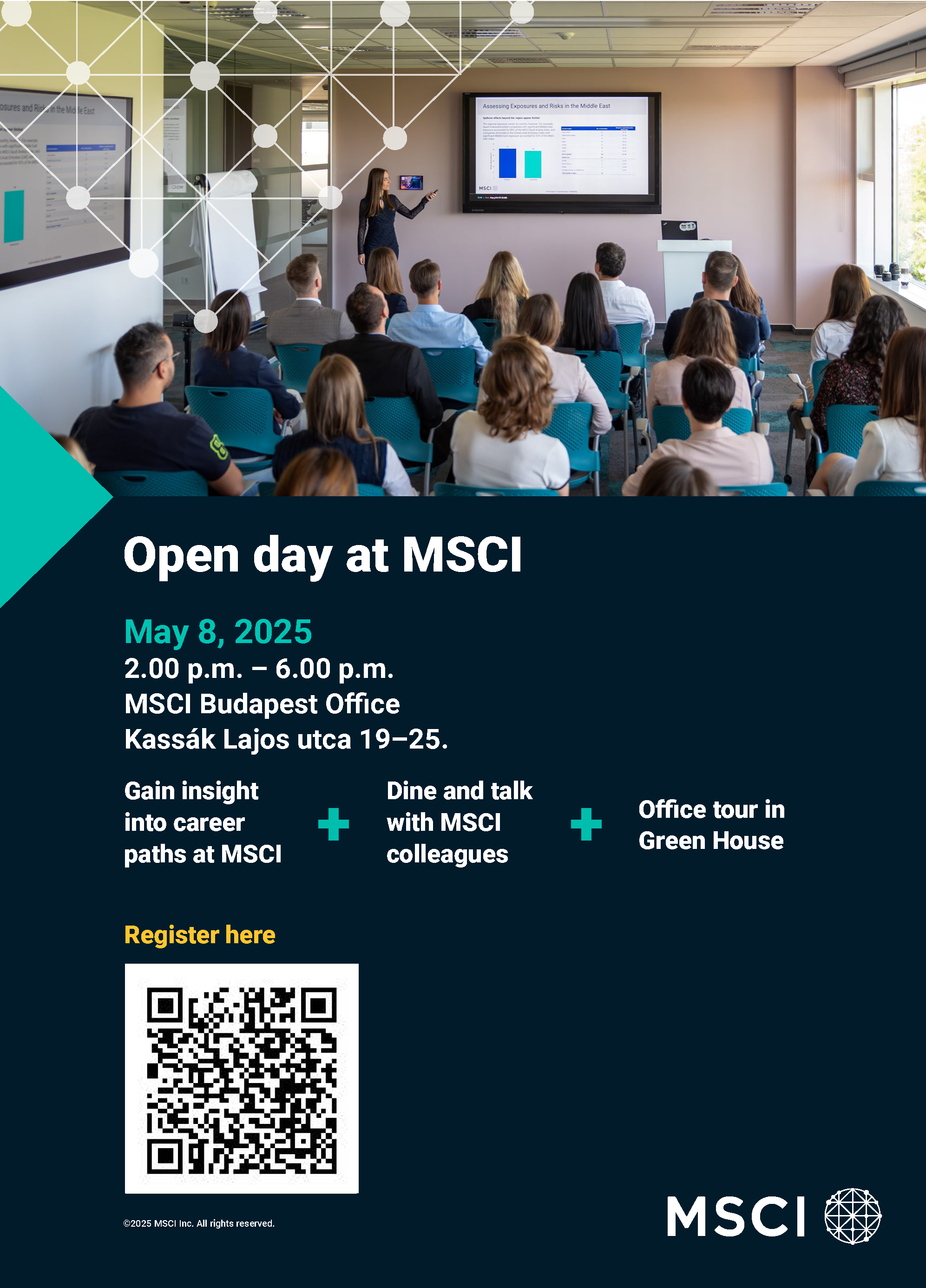 MSCI are organizing an Open Day event at, which will be held in their office on the 8th May 2025. In the past years MSCI organized open days every spring and fall. Participants will have an opportunity to hear from their colleagues, HR and Talent Acquisition.