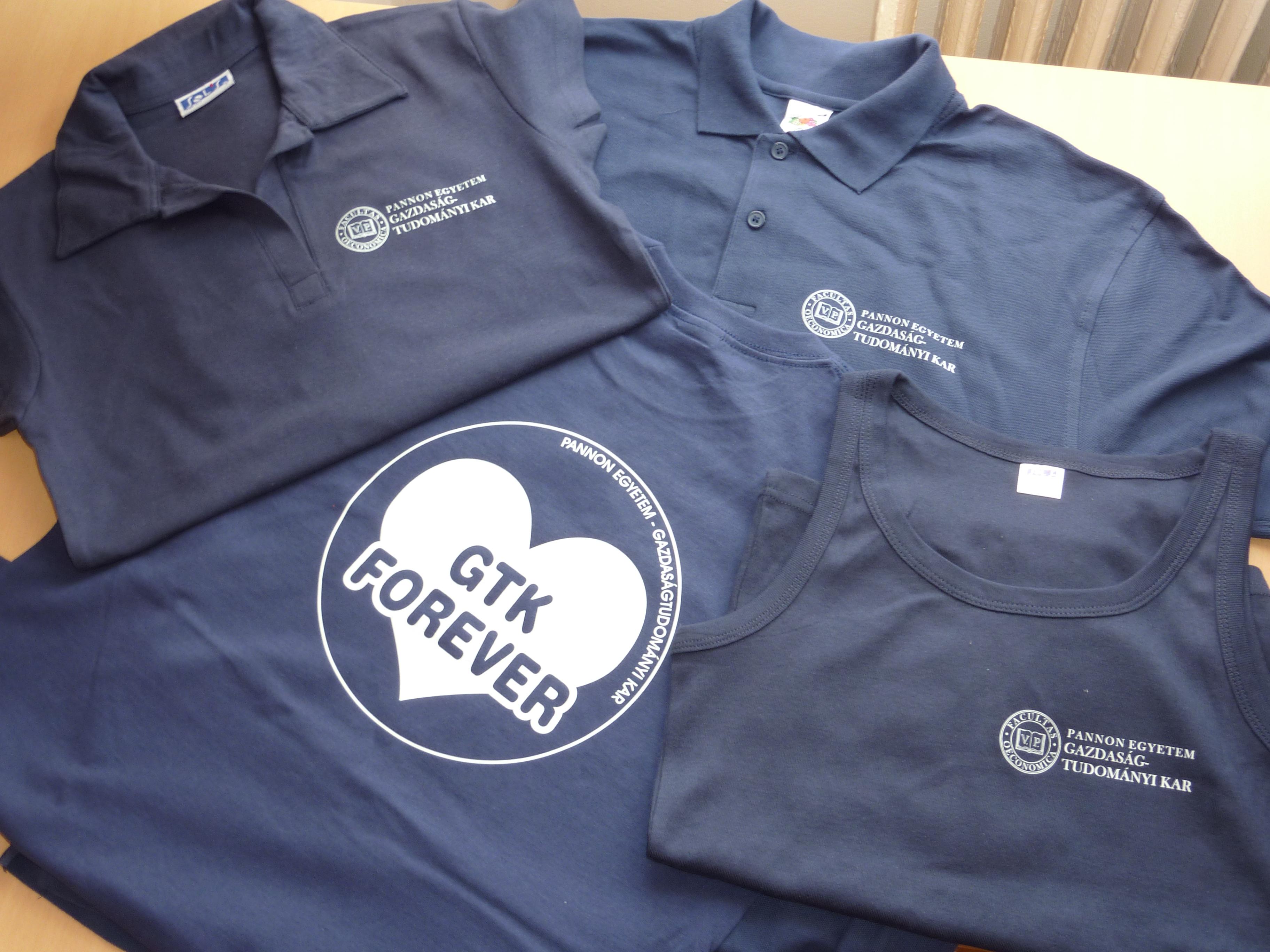 Különböző fazonokból választhatsz, ahogy azt a képen is láthatod: női atléta és galléros póló, férfi galléros póló, és unisex póló, természetesen mindegyik a Karunk logójával és „GTK FOREVER” felirattal emblémázva. 🙂