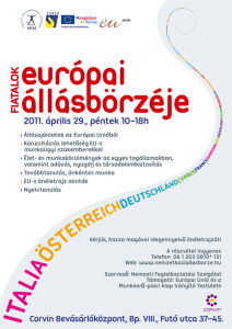 A Fiatalok Európai Állásbörzéjére Budapesten, a Corvin Bevásárlóközpontban (VIII., Futó u. 37-45.) 2011. április 29-én (pénteken) 10-18 óra között kerül sor.