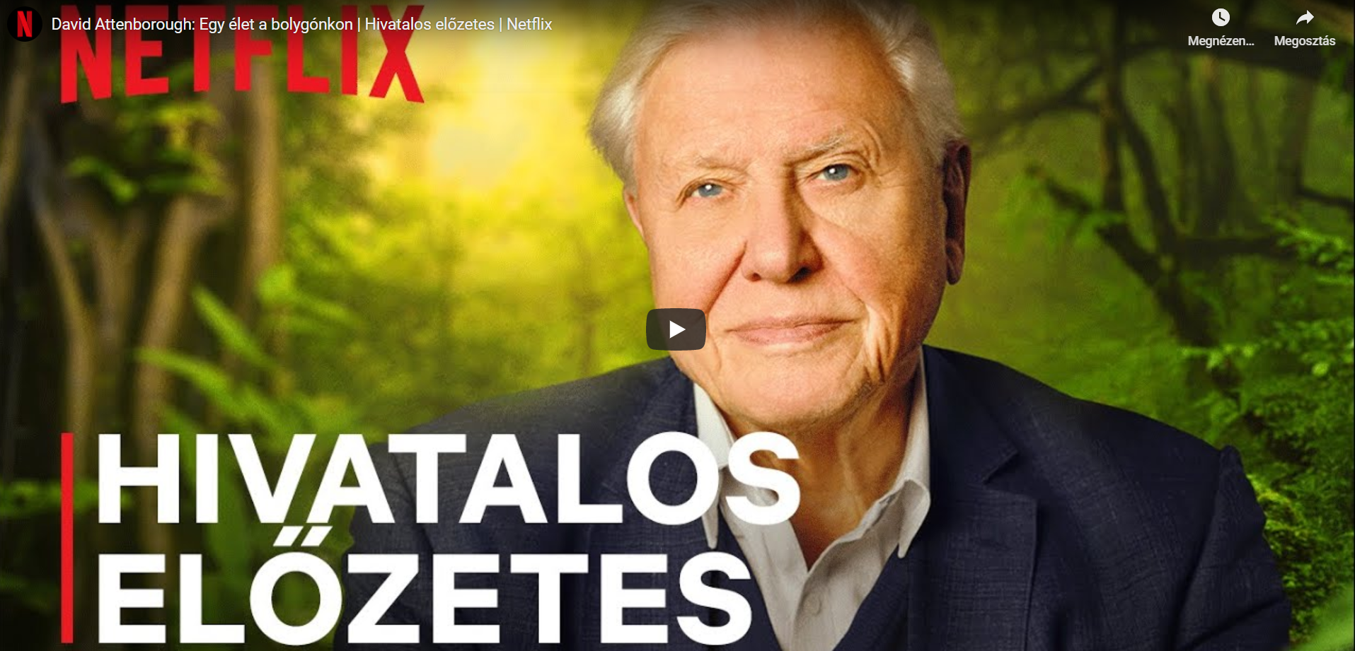 Attenborough reményteljes üzenetében a következő nemzedékek számára felfedi azokat a megoldásokat, amelyekkel elkerülhető a katasztrófa, és megmenthető a bolygónk.” (Forrás: Netflix Magyarország)