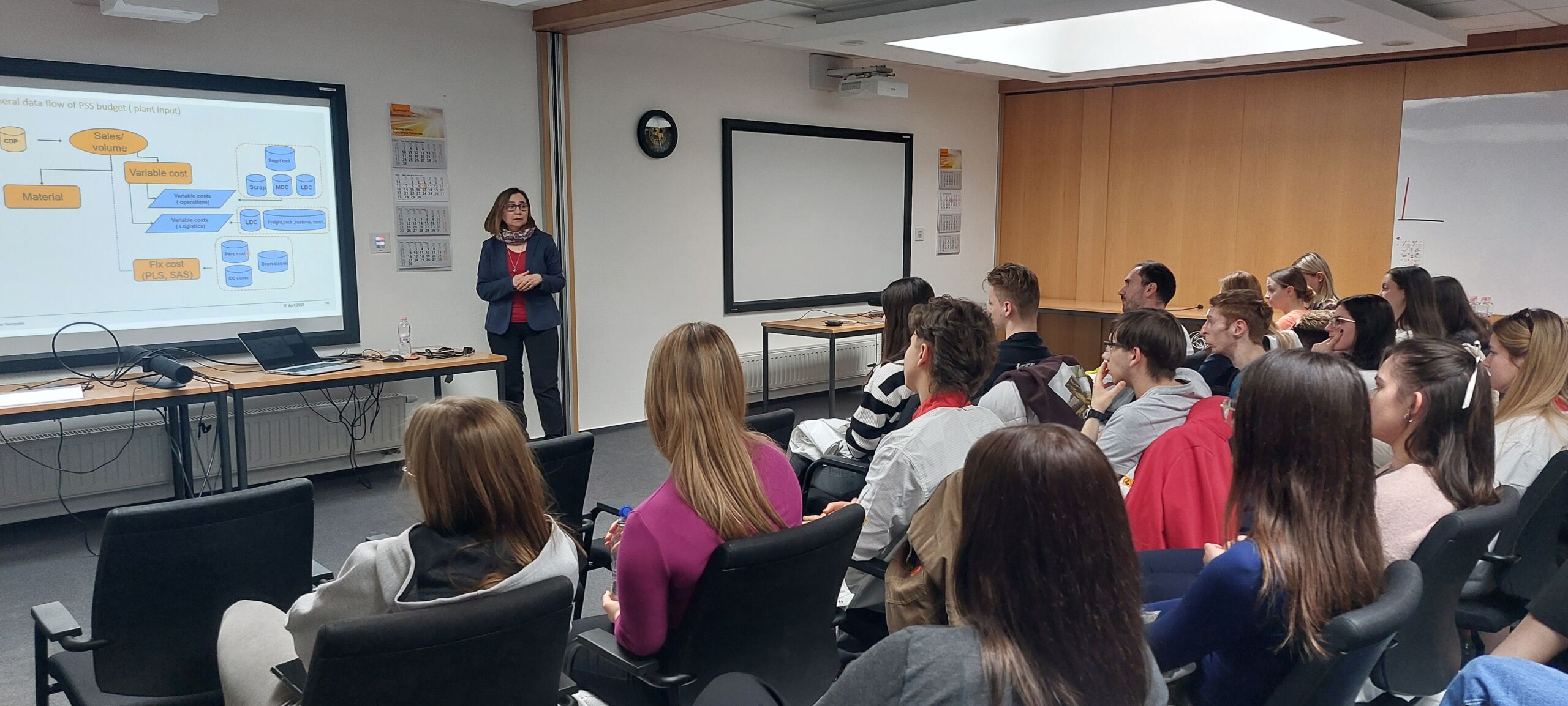 Bertus Éva controlling vezető bemutatta a gyári controlling, a termék önköltség, büdzsé tervezés, P&L elemzés, profitability elemzések folyamatait.
