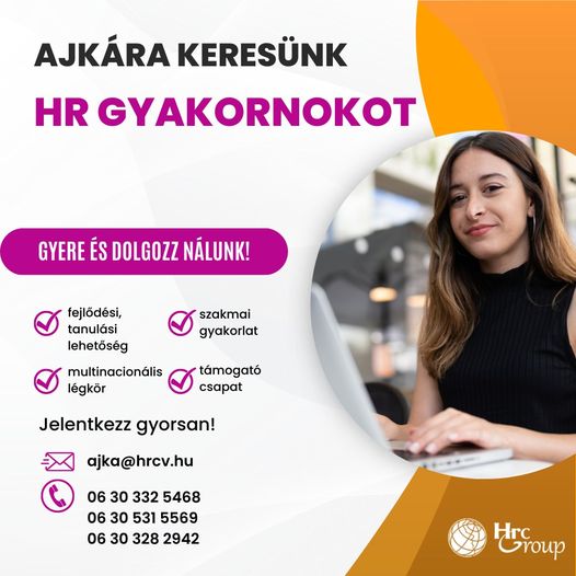 Együttműködő partnerünk a HRCV, ajkai partner céghez keres HR gyakornokot!