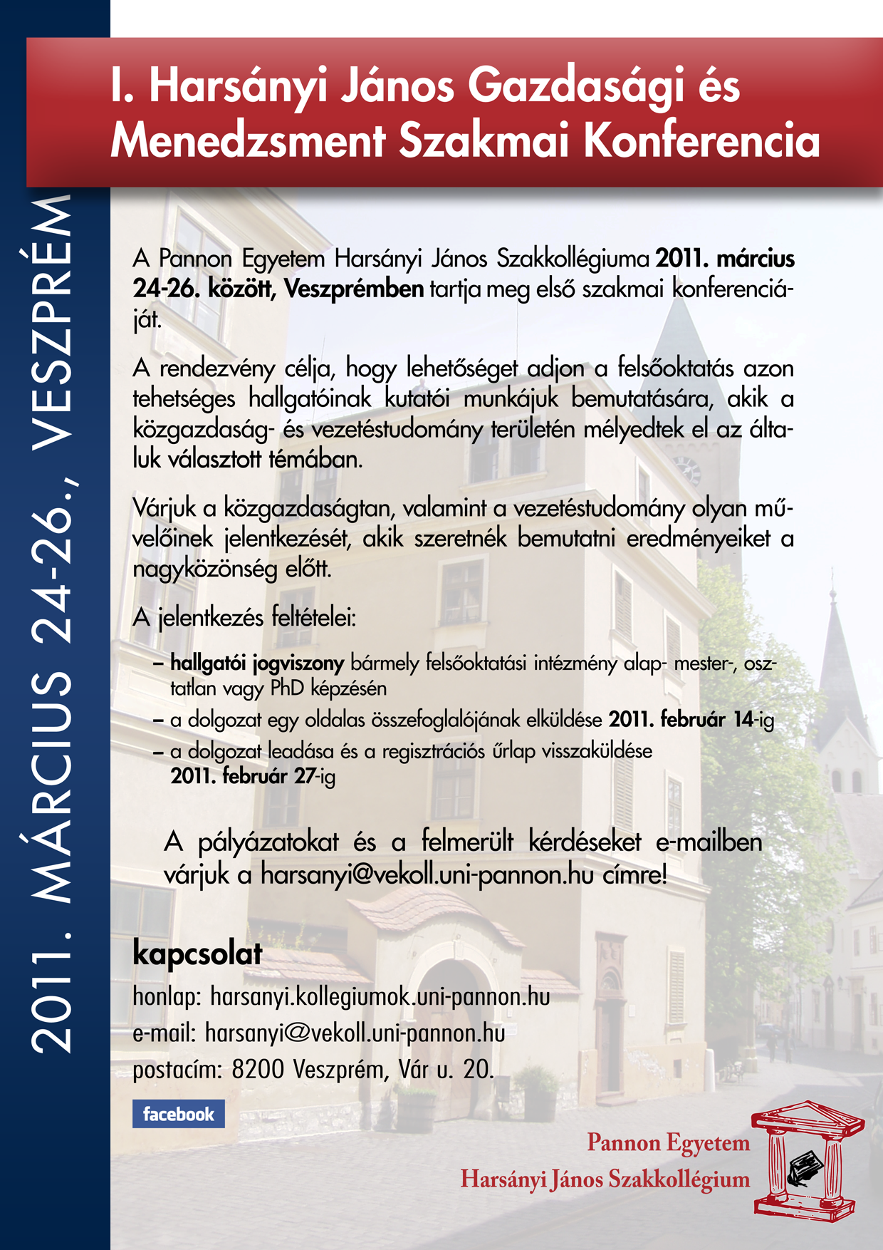 Szeretnénk, ha az első egy igazi, emlékezetes szakmai beszámoló lenne, ahol nemcsak saját Szakkollégistáink, egyetemünk hallgatói, hanem más egyetemek, főiskolák gazdasági- és vezetéstudományi hallgatók is részt vennének rajta.