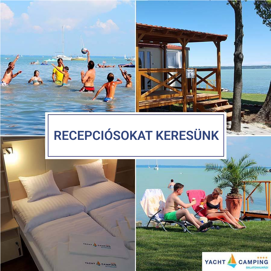 Remek csapatba nappalos recepciós, értékesítő kollégákat keres Balatonalmádiban a  Yacht Camping, azonnali kezdéssel, éves állásra. A pozíció betöltéséhez idegenforgalmi szakmai tanulmány vagy végzettség, valamint megbízható angol nyelvtudás előnyt jelent. Szakmai gyakorlat teljesítéséhez is várják a jelentkezést. Kölcsönös elégedettség esetén a szakmai gyakorlat után határozatlan idejű munkaszerződést ajánlanak.