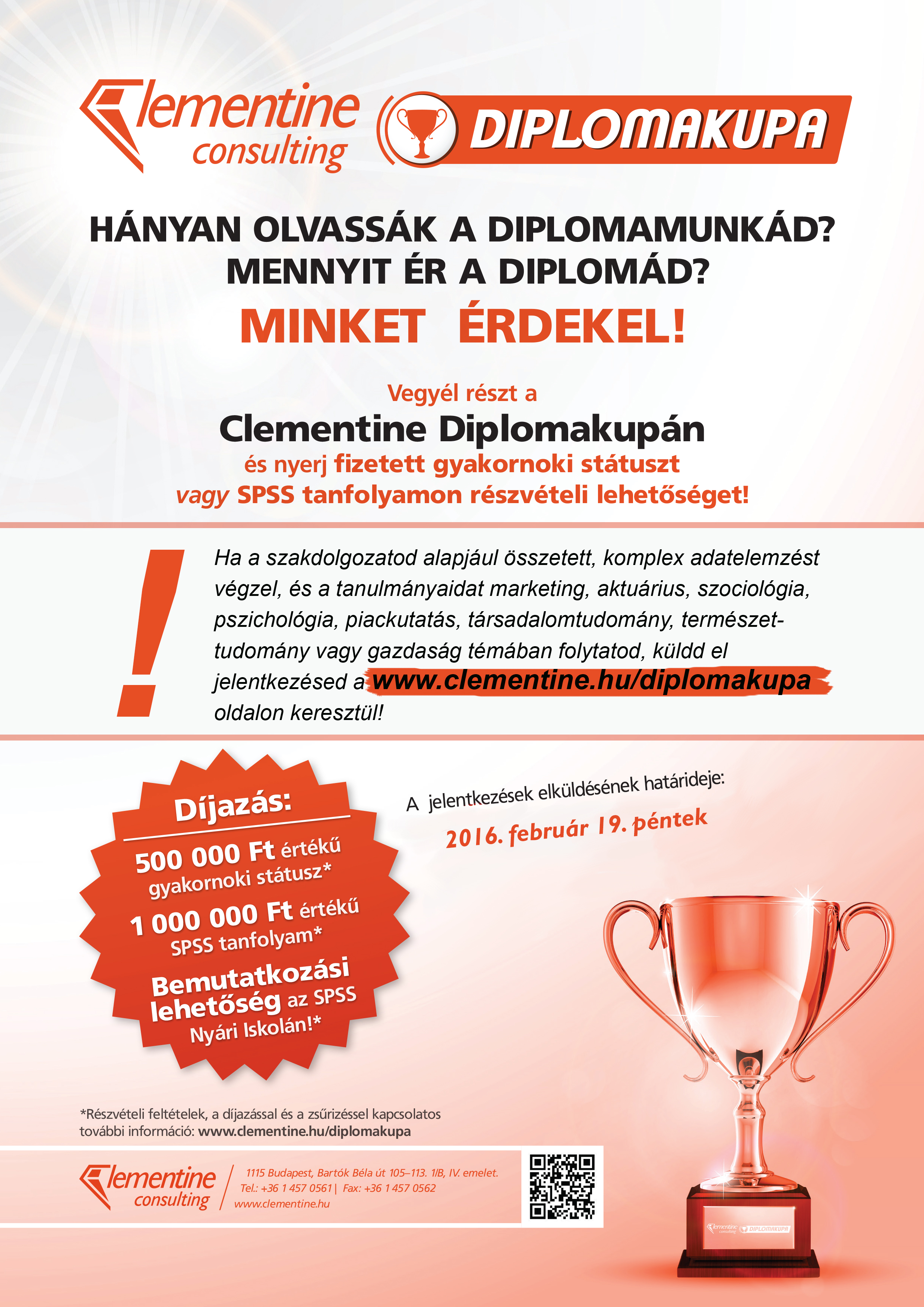 Vegyél részt a Clementine Diplomakupán és nyerj fizetett gyakornoki státuszt vagy SPSS tanfolyamon részvételi lehetőséget!