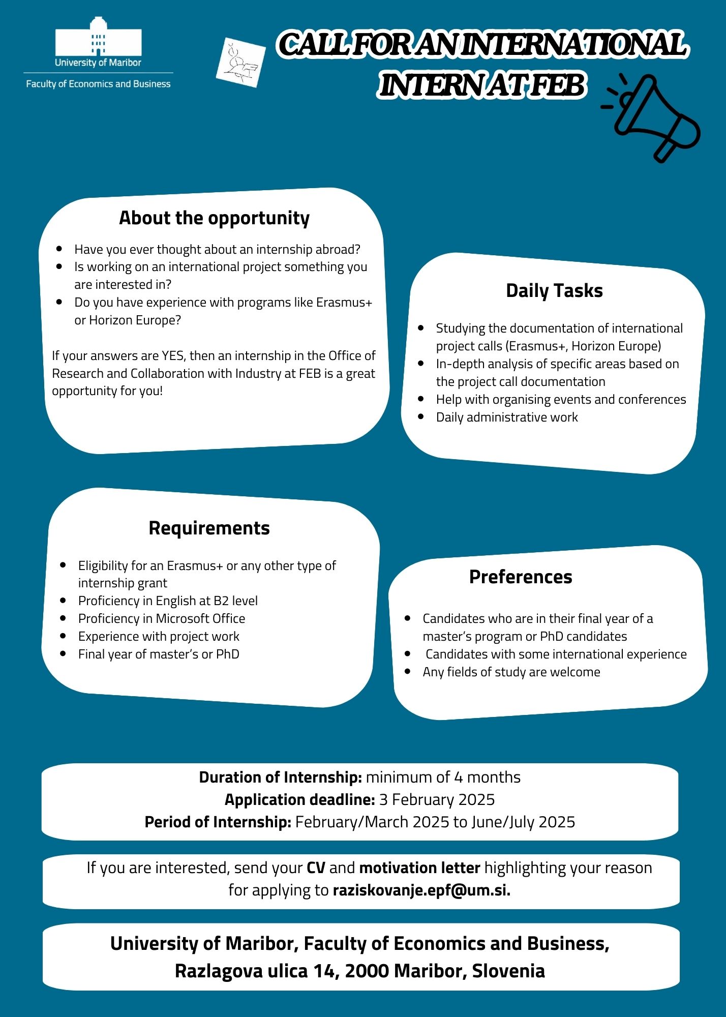 1 fő gyakornokot keresnek 3-6 hónapos időtartamra. Rendezvénymenedzsment és adminisztratív terület feladatkörökbe, B2 szintű angol nyelvtudással.