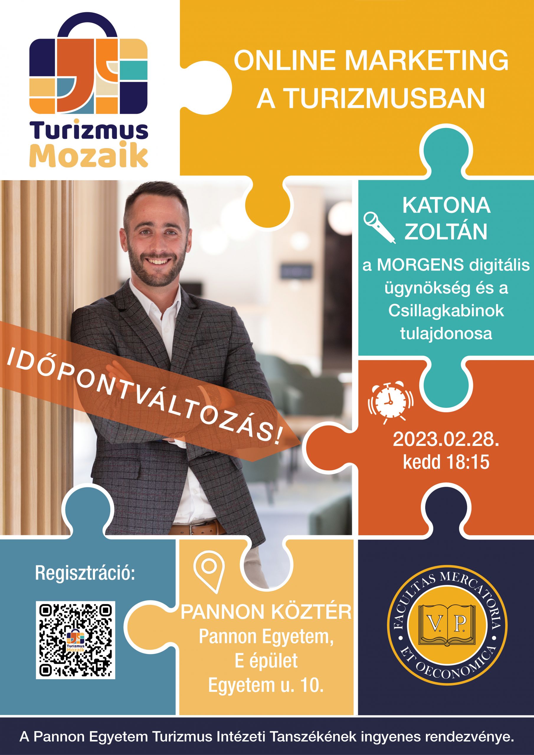 A 2023. február 28-án 18:15 órai kezdettel, a Pannon Köztéren megrendezésre kerülő Turizmus Mozaik meghívott előadója Katona Zoltán, a MORGENS digitális ügynökség és a Csillagkabinok tulajdonosa, akinek „Online marketing a turizmusban” című előadását jó hangulatú, kötetlen beszélgetés követi.