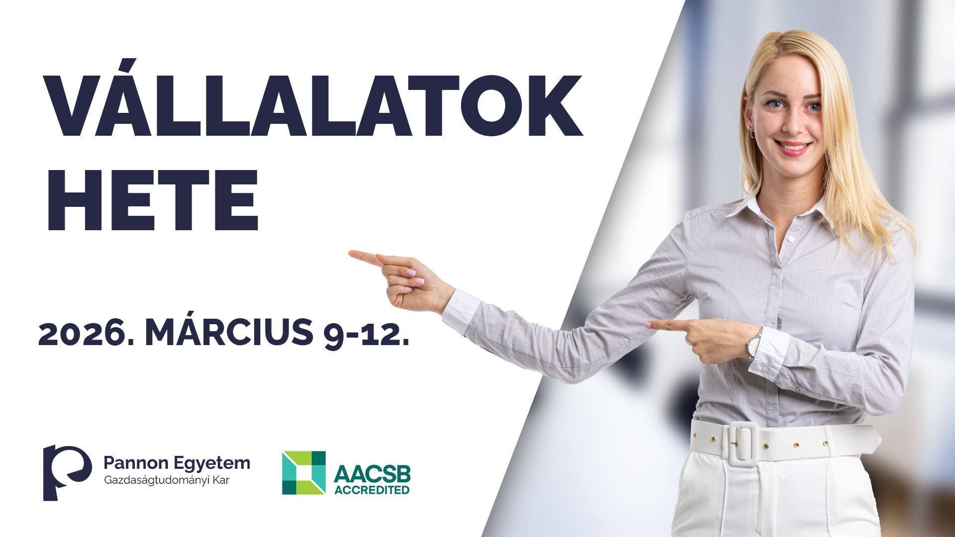 2026. március 9-12. – Egy hét a Pannon Egyetem Gazdaságtudományi Karán, ami a szakmai gyakorlatokról, a vállalatokról, a karrierről és a sikeres álláskeresési technikákról szól!